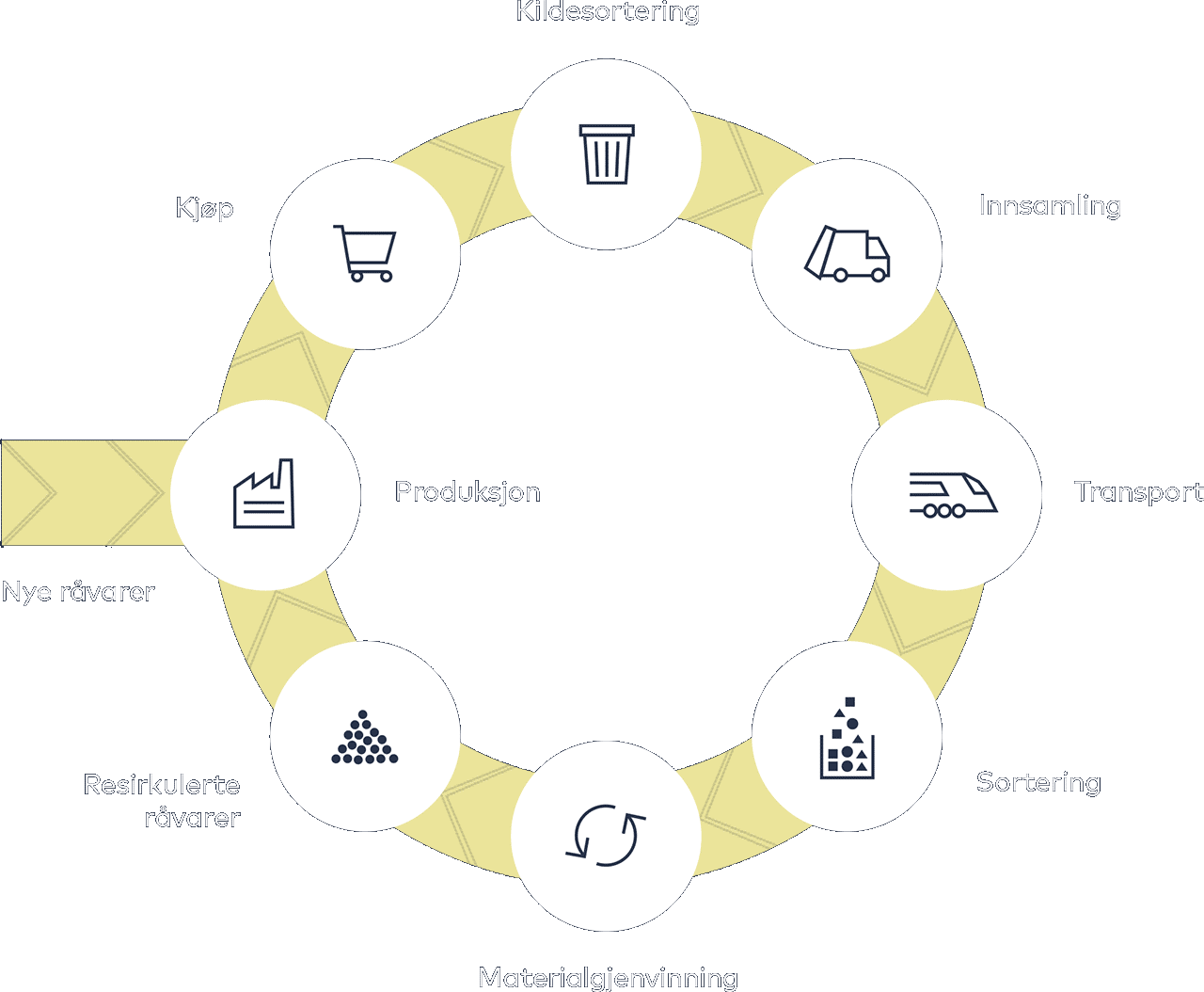 For at vi skal utnytte ressursene i brukt metallemballasje må kommunens innbyggere rengjøre og kildesortere emballasjen sin. All metallemballasje som Norsk Metallgjenvinning tar ansvar for på vegne av våre medlemmer går til høyverdig gjenvinning i Norge og Europa, og kommer tilbake til kretsløpet i form av resirkulerte råvarer.